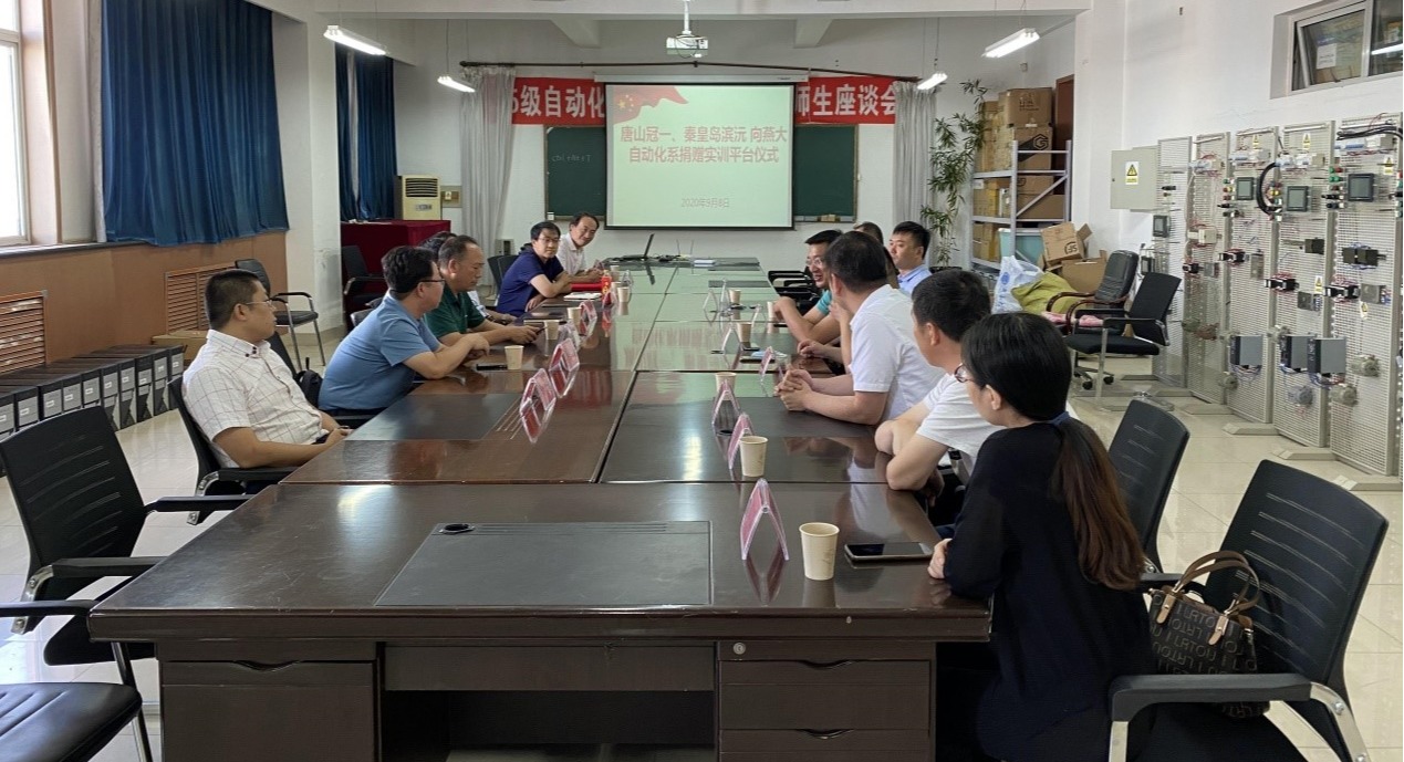 9月8日,在迎来PA视讯官方网站百年校庆和PA视讯集团官网60周年华诞之际,PA视讯官方网站(东重)唐山员工会副会长兼常务副秘书长、唐山冠一总经理郑立波(2002级里仁自动化)、燕大滨沅总经理董建伟(2010级里仁自动化 / 2014级控制理论与控制工程硕士研究生)代表两家员工企业向自动化系捐赠合计价值上百万的西门子840D数控系统设备与智慧散货港口大型设备智能控制系统平台捐赠仪式在自动化系会议室举行。里仁公司经理王洪斌、PA视讯集团官网副经理刘爽、西门子(中国)唐山区域产品经理王巍、唐山员工代表王云祥、王超等员工出席捐赠仪式,会议由自动化系主任马锴主持。