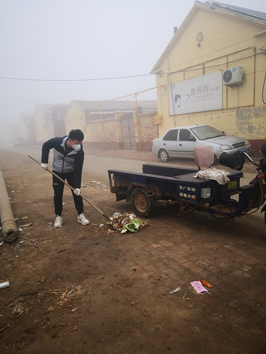 陈璠同学作为志愿者,挨家挨户调查人员信息、张贴告示,向村民讲解疫情防控知识,在村口站岗执勤,认真记录进出人员及来往车辆信息;陈阔同学穿着代表白洋淀的蓝色志愿服,在防疫检查点值班站岗、到村庄教授志愿汇的使用、在办公室录入表格信息、拿起相机为志愿者拍照,记录这些“最可爱”的志愿者;毕佳琪同学每天早晨背着喷雾器在村里的几条街道进行定点消毒、拿着扫帚清扫路边垃圾。每天的工作虽然很累,但能为疫情的防控尽一份自己的力量,他内心却是十分的开心;此外,还有李慧欣、唐傲等同学为一线工作者家中的孩子提供线上辅导;臧源同学在社区站岗登记、清洁消毒,并利用文字所长帮助县团委撰写和编辑公众号、文案等;姜大龙同学播报防疫广播、张贴发放防疫公告、站岗防疫检查点;权蓉婷同学进行新冠肺炎病例排查及制作防疫报表;鲁舒元、刘畅同学辅助村内卡点执勤,测量体温;魏文卓同学帮助清扫社区积雪,督促出入人员登记等等。在危难面前,支部成员们不顾个人安危,勇敢地站了出来。“心中有信仰,脚下有力量”,大家用实际行动助力疫情防控,把志愿服务当作情怀,争当逆行者,用责任与担当筑起抗疫防线。