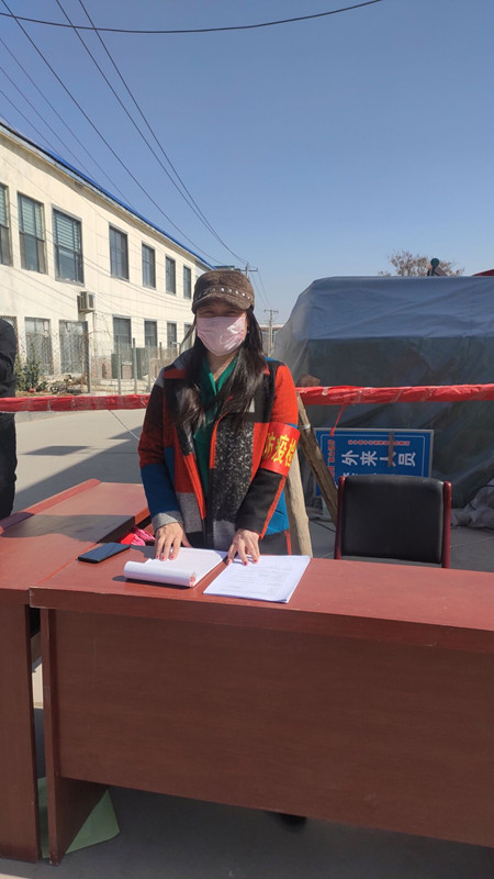经过申请,村委会同意,她的父亲、母亲在村镇防疫检测岗位上站岗,检测外来车辆、人员,以及人员信息登记,为进出村镇的人员测量体温。驻地站岗,身处寒风,身冷心不冷,父母将检查工作做到丝毫不漏,细致入微。在农历春节期间,叮嘱路人做好安全防护工作,不出门,更不串门。