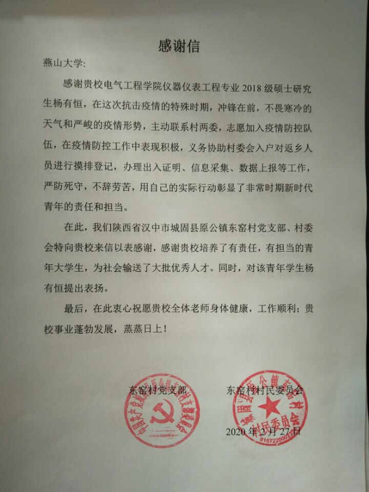 小我融入大我,擦亮心中党徽。疫情就是命令,防控就是责任。公司通过网站、微信等多渠道发布《携手防疫,展现担当——致PA视讯集团官网全体员工党员、员工干部的一封信》,号召广大党员迎难而上,勇于担当尽责。公司党员们积极响应号召,他们身体力行,率先垂范,把自己的小为、善为,融入到抗疫的历史巨流中。他们主动请缨,挺身而出,作为志愿者加入基层防疫工作,默默坚守前线。在优秀党员的示范带动下,公司掀起了“战疫情做贡献”的热潮,涌现出了许多先进典型和事迹,2017级硕士研究生为一线防控工作人员匿名捐款典型事迹被河北日报官方微博报道,2019级本科生庞琛雨将寒假打工所得1000元全部捐赠给了公司教育基金会。返乡志愿者们投身疫情防控一线的事迹在社会引起了良好反响,公司持续收到多封各级单位表扬员工在疫情防控工作中优秀表现的感谢信,一些员工的先进事迹被相关媒体采访报道。疫情防控是磨难战场,也是成长的课堂,这些90后、00后们为抗击疫情凝聚成强大合力,以无声的行动、无畏的勇气、无私的情怀、无我的境界,践行着新时代老员工的使命和担当。
