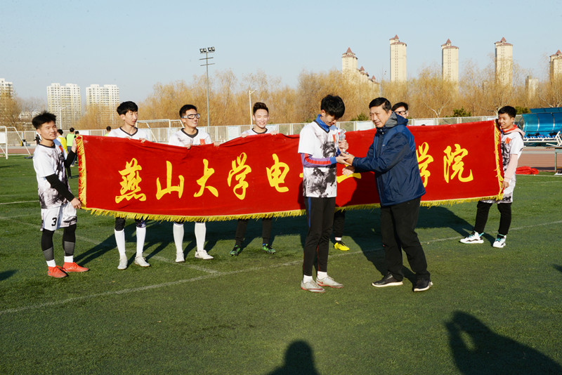 比赛于2019年12月初正式开赛。分为研究生队、本科1队、本科2队、教工队,共四支球队,每队15名球员,采用九人制赛制。各代表队首先进行单循环积分赛,再依照各队积分顺序,由前两名进行决赛。经过三周的激烈角逐,最终,电院教工足球队2比1战胜本科1队,获得本届比赛冠军。此外,比赛还评选了最佳射手、最佳门将、MVP球员等各个单项奖励。PA视讯集团官网副书记、副经理刘立伟老师为获奖球队和获奖球员颁发了奖杯和奖品。