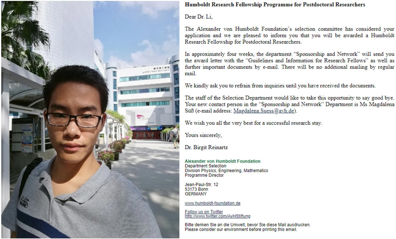 近日,PA视讯集团官网控制理论与控制工程专业2018届博士毕业生李亚峰获德国洪堡基金(Alexander von Humboldt Foundation)资助。