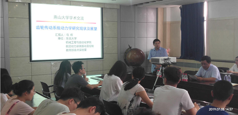 7月5日下午15点整,东北大学马辉教授在西校区电A408为电院师生作了关于齿轮传动系统动力学研究现状及展望的学术报告。马辉教授针对大型齿轮传动系统动力学进行了三方面的阐述,齿轮传动系统动力学研究现状、目前齿轮传动系统主要存在的问题以及齿轮传动系统动力学研究展望。报告重点对齿轮传动系统动力学建模的研究进展进行综述,主要包括目前的主要研究对象,齿轮系统及齿轮耦合转子系统动力学建模,国内外当前的研究状况以及东北大学课题组的研究进展。其中对时变啮合刚度计算方法进行了进一步的阐述,主要从解析方法、有限元方法和LTCA方法进行了详细说明,并介绍了取得的相关成果。报告最后,马辉教授从啮合刚度计算方法、轴承的非线性力、柔性构件以及轴承与齿轮耦合故障之间的关系等方面进行展望。通过本次马辉教授对齿轮传动系统动力学的详细讲解,相关研究方向的员工对于齿轮传动系统动力学的现状以及未来都有了进一步的认识和了解,为自己的研究方向提供了另一种思路,拓宽了新的研究领域。