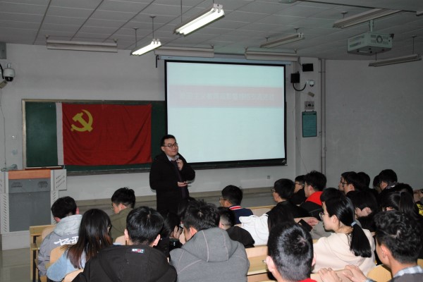 | 支部书记梁明伟老师在与同学们分享学习体会 |