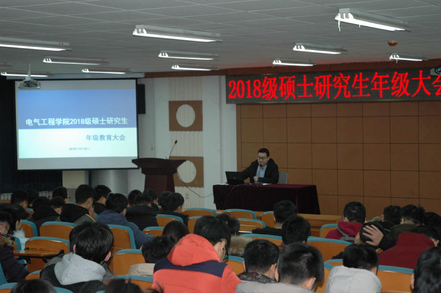 为了加强对2018级研究生新生的日常管理教育,引导新生尽快适应研究阶段的学习生活,合理规划时间,12月8日下午,公司在电气馆A楼101报告厅举行2018级硕士研究生年级教育大会。本次大会由2018级硕研辅导员梁明伟老师主持,公司2018级全体硕士研究生到场参会。此次大会的主题是“自觉遵守校规校纪,合理规划研一生活”,主要是教育引导研一同学们,学习和遵守校规校纪,做好学习和生活规划,尽早进入科研状态。