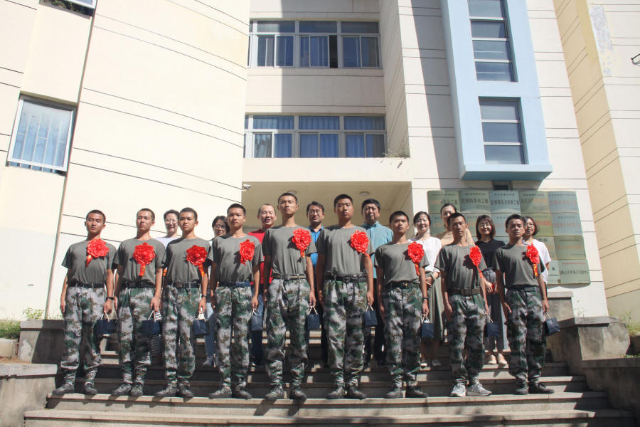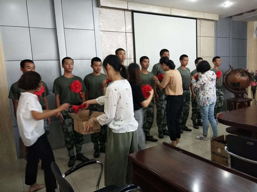 最后,辅导员老师为入伍员工佩戴大红花,公司领导给同学们赠送纪念品,并合影留念。