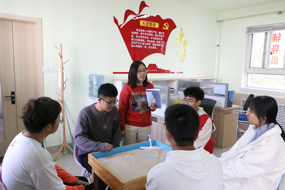 沙盘指导师帮助同学们做心理分析