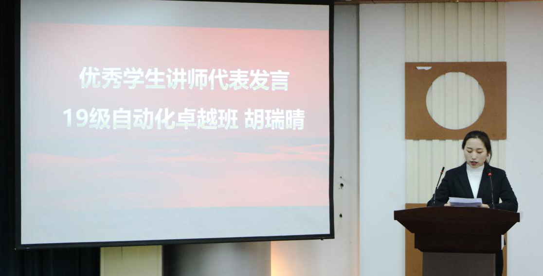 会上,公司学习发展中心胡瑞晴同学代表优秀员工讲师发言,她与同学们分享了自己进入大学之后的学习、工作经历。公司辅导员王晴老师做大会总结发言,她呼吁公司学子向优秀员工代表看齐,努力学习,力争上游。