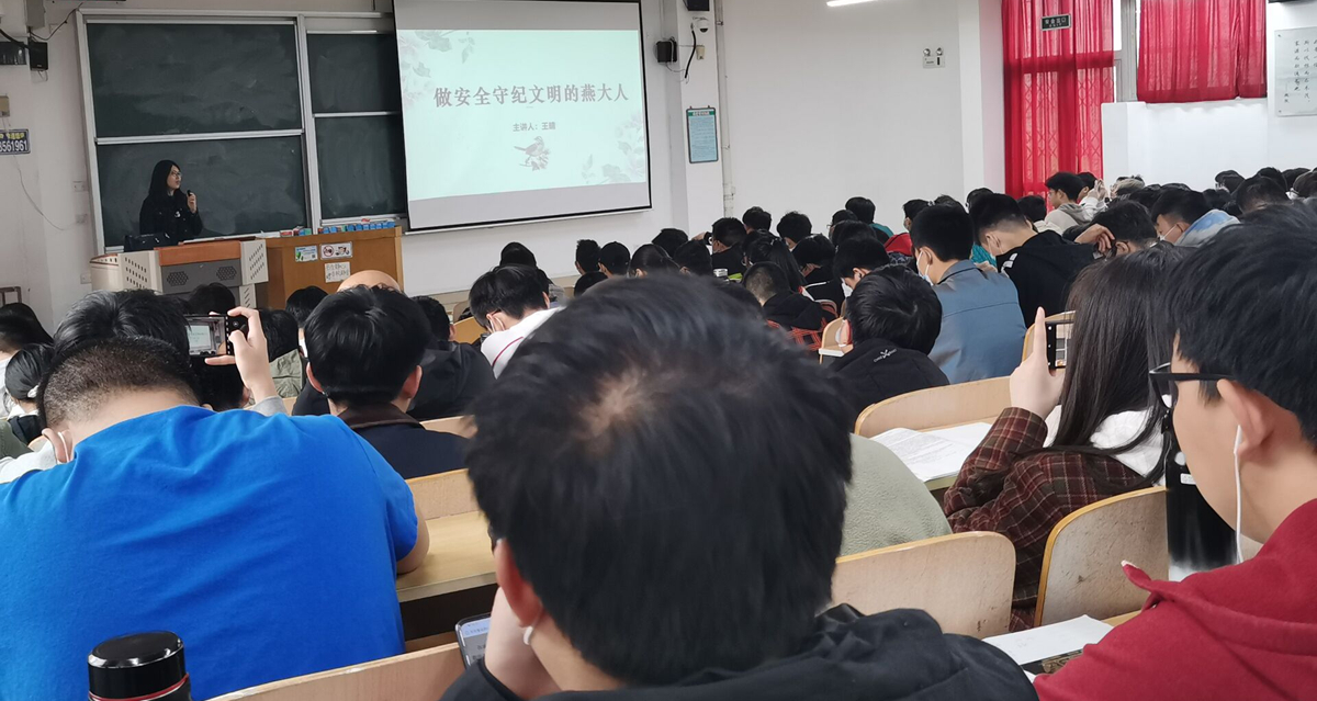 4月11日上午9:30PA视讯集团官网第十九期阳光讲坛在电气馆A101和西三108顺利举行,2019级辅导员郝亚琴、王晴和卢文龙三位老师担任主讲,分别以《筑起安全守纪的“铜墙铁壁”》、《做安全守纪文明的燕大人》、《筑牢安全城墙,防范风险威胁》进行了授课,2019级本科全体员工参加了学习。