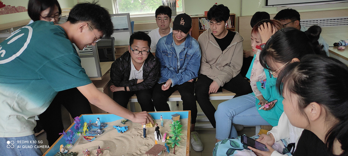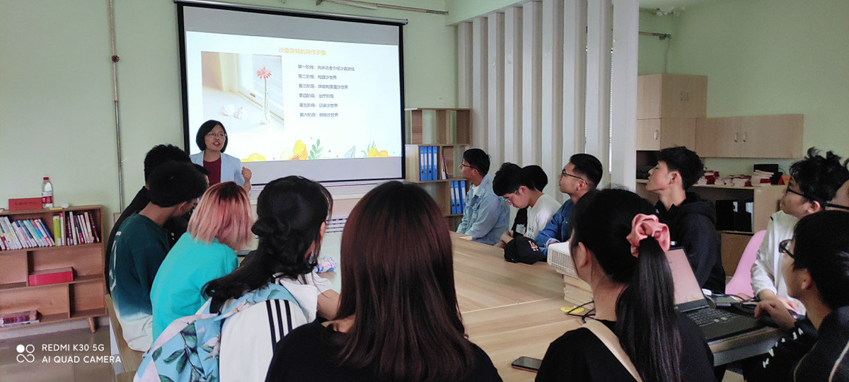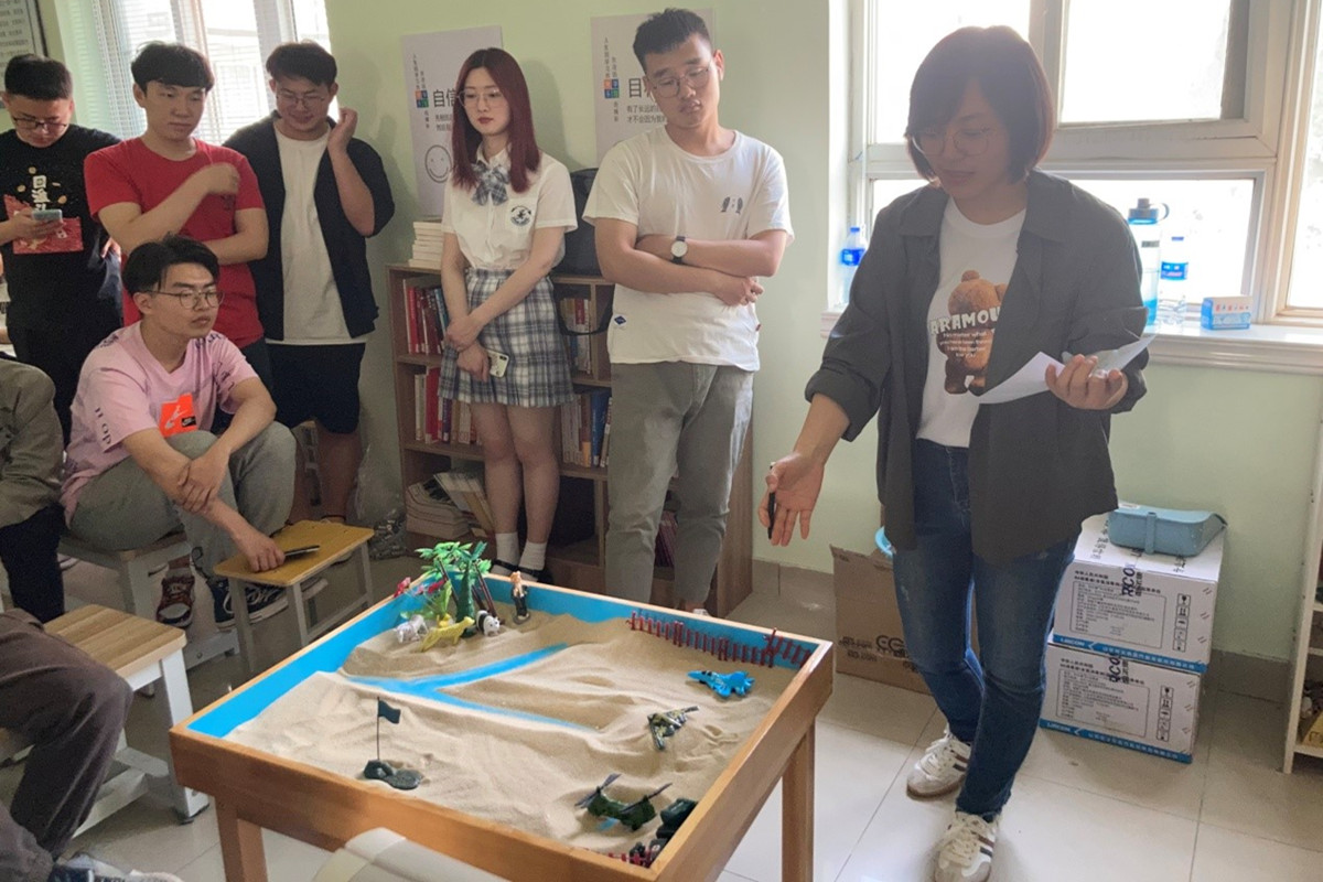 一沙一世界,一花一天堂。为了让同学们对沙盘游戏有更直观的了解和认识,电气公司将沙盘游戏体验作为525系列活动之一,不仅面向全体同学自愿预约,进行沙盘体验,还面向心理委员进行知识培训和现场体验。本次沙盘体验活动共分为三场,5月21、22日在八组团老员工社区思政工作室进行,本科年级心理委员参加了沙盘体验活动,公司辅导员李雪莲老师和郝亚琴老师担任沙盘游戏体验的指导师。