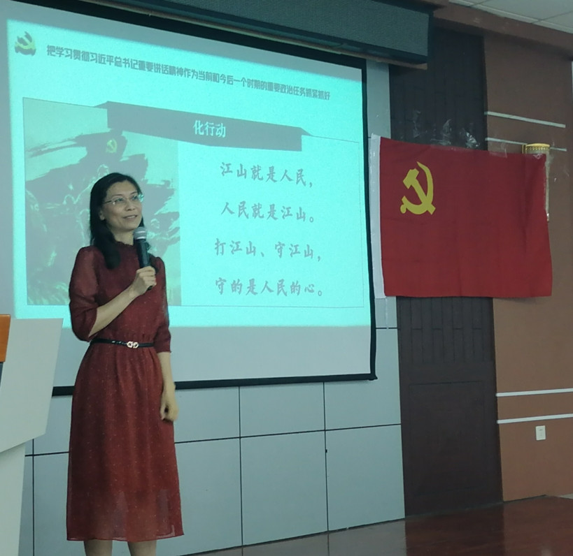 讲座中,郭清秀老师引经据典、以史为证,指出习近平总书记在庆祝中国共产党成立100周年大会上的重要讲话是激励全党全国各族人民向第二个百年奋斗目标进军的政治宣言和行动纲领,为大家介绍了总书记重要讲话中的新思想、新观点、新要求,三问“初心”——请各位党员思考自己当年入党时的初心,号召大家坚定共产主义理想信念,学好本领,报效祖国。