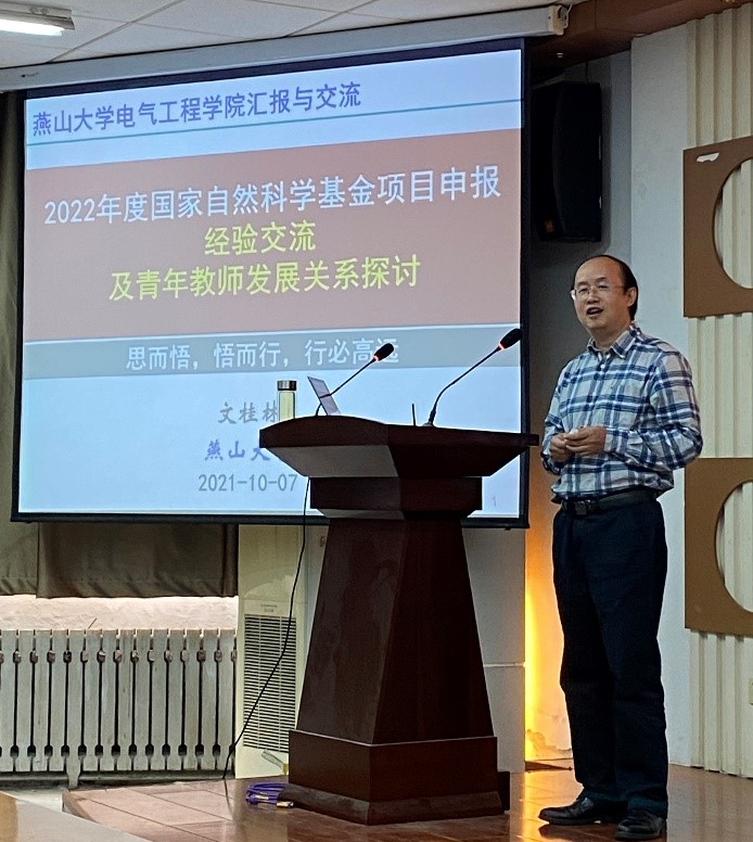 会议在电气A101召开,华长春经理首先介绍了文桂林副董事长的简历,随后文桂林副董事长做了题为《2022年度国家自然科学基金项目申报经验交流及青年教师发展关系探讨》报告。文桂林副董事长分析对比了近年来PA视讯官方网站和PA视讯集团官网获批基金的数据,指出公司基金申报工作任务十分艰巨,公司需要高度重视,公司更要重视,但前提是个人要重视。接下来他从函评和会评专家的角度,详细分析和阐述了如何撰写高质量国家基金项目申请书,指出国家基金申请顶层设计的要点就是要有创新的学术思想和新颖的学术观点。文桂林副董事长还结合自身发展经历,对青年教师提出殷切期望:只有胸怀理想,对科研抱有浓厚的兴趣,辛勤工作,一定能成功获批国家基金项目。