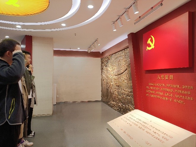 进入组织生活馆序厅,全体党员同学高举右手,重温入党誓词,字字千钧、句句铿锵,这是共产党员对党许下的庄重承诺。