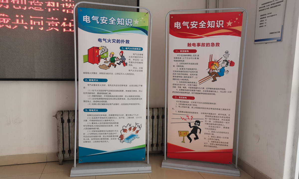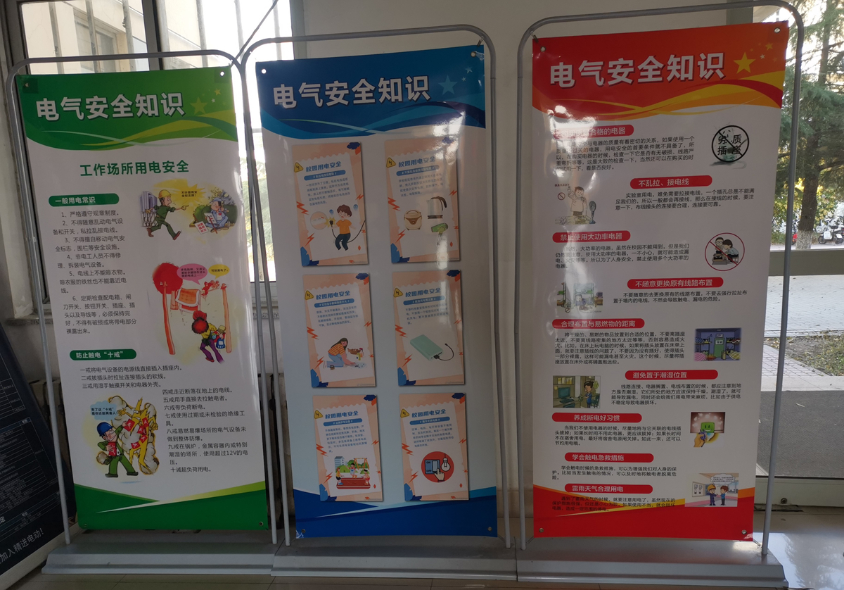 为进一步提高广大师生安全用电意识和自我保护能力,减少安全事故的发生,提升校园用电安全教育的水平,公司制作了安全用电知识宣传展板,展板图文并茂的介绍了用电安全知识。