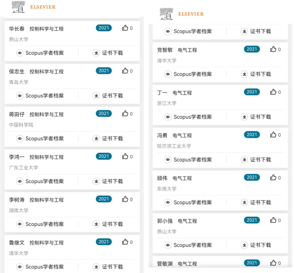 2021爱思唯尔“中国高被引学者”榜单以全球权威的引文与索引数据库——Scopus作为中国学者科研成果的统计来源,遴选最终得到各学科领域最具全球影响力的中国学者,表明该学者在所研究领域具有国际影响力,其科研成果为本领域的发展作出了突出贡献。
