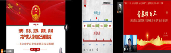 现已开展39期的辅导员阳光讲坛中,各年级辅导员老师与员工相聚云端,为同学们讲述共产党人信仰的五重维度,讲述疫情之下老员工该如何规划自己的学业生涯,带同学们回望五四运动、明确时代责任。