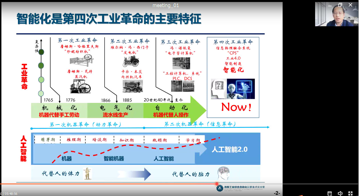 东北大学丁进良教授作了题为“流程工业智能化进展与挑战”的学术报告。丁教授详细介绍了流程工业的特征及其在人工智能2.0发展中面临的挑战性问题,提出了面向全局优化的流程工业智能优化制造系统体系架构,介绍了集反馈、预测和前馈等控制思想的多目标动态优化控制策略,以及基于自学习的流程工业运行优化、智能预测方法。展望了基于数字孪生、云计算等先进技术的流程工业智能化发展方向。