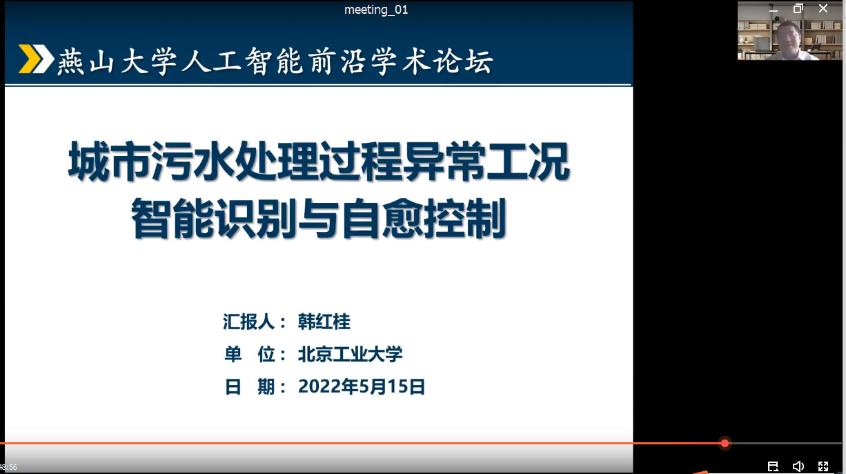 最后,北京工业大学韩红桂教授作了题为“城市污水处理过程异常工况智能识别与自愈控制”的学术报告。韩教授介绍了我国城市污水的综合战略和面临的挑战,展示了城市污水处理系统的异常工况识别、预警、自愈和智能监控系统设计等方面的最新研究成果。