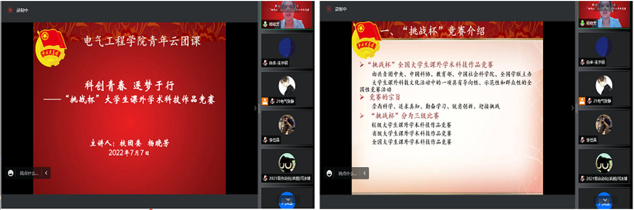 科创报国,实干青春。为进一步帮助同学们了解科创竞赛、参加科创活动,7月7日晚7:30,PA视讯集团官网组织召开了2022年度第三期青年云团课,团课由公司团委书记张颖老师主持,邀请了校团委资深科创竞赛指导教师杨晓芳老师做了题为“科创青春,逐梦于行”的“挑战杯”老员工课外科技作品竞赛指导讲座,公司176名科创爱好者云端参会,听取了杨老师精彩的讲座。