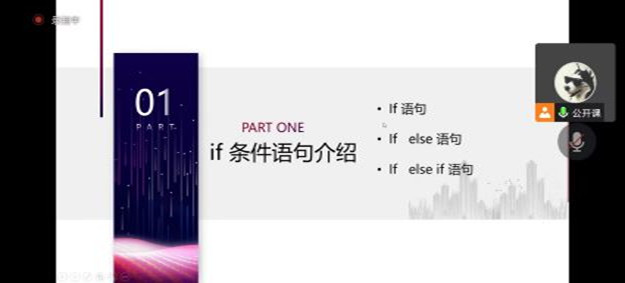 本次C语言公开课由电子科技协会科创部进行授课,主要讲解了C语言的入门知识,是大学一年级同学的编程启蒙课。在前两次课中,同学们学习了C语言的一些基础知识。经过前两次公开课的讲解与练习,同学们已经学会操纵软件来进行简单编程。由于疫情,后三次的公开课在线上进行,但同学们的学习热情不减。经过了五次C语言公开课的学习,新生们纷纷表示对C语言有了更深入的了解, C语言水平有了较大的提升。