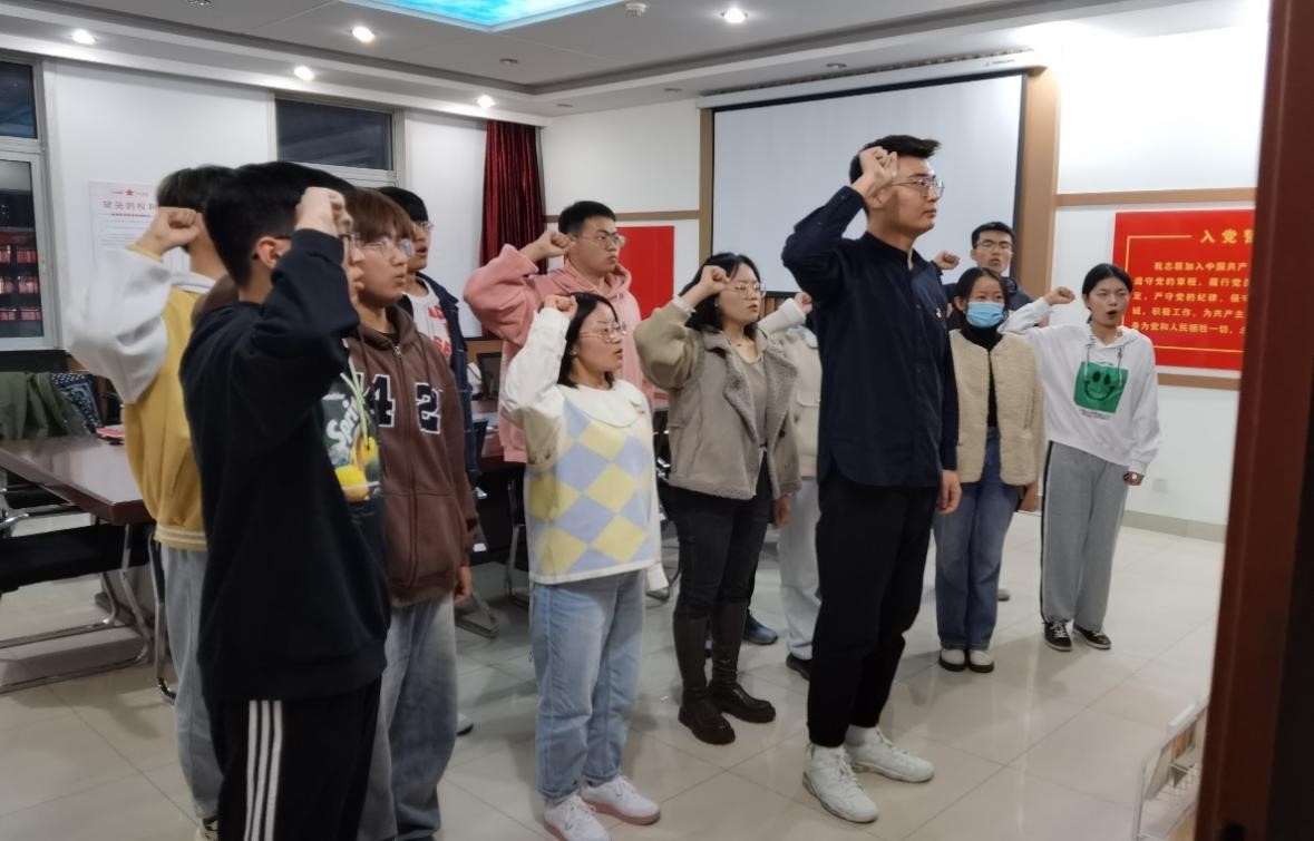 通过会议上的交流学习体会,党支部全部党员及发展对象深刻学习二十大重要思想内涵。届时副书记邹绪缤同志带领全体党员重温入党誓词,全体党员举起右手,面向党旗庄严宣誓,用铮铮誓言表达为党、为人民不懈奋斗的决心。