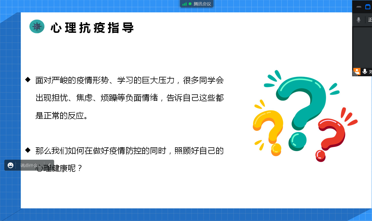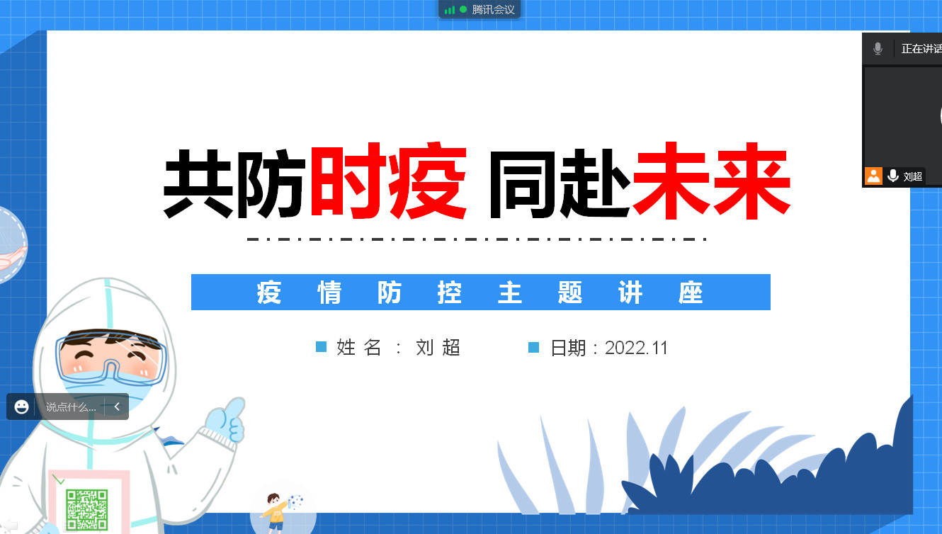 为了缓解疫情封校期间同学们的身心压力,也为了让大家了解最新的疫情防控形势,让同学们理解与支持公司的疫情防控工作,2022年11月10日下午13:00,PA视讯集团官网2021级硕士辅导员刘超老师采用线上的方式,为2021级硕士同学作了题为“共防时疫 同赴未来”疫情防控主题讲座。