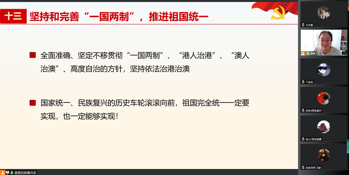 为深入学习宣传贯彻党的二十大精神,把青年思想统一到学习党的二十大精神上来,把青年力量凝聚到践行党的二十大精神中来,11月5日下午,辅导员冯艳春通过线上平台面向2020级电气工程及其自动化专业本科生开展以“学习二十大·一心跟党走”为主题的第48期辅导员阳光讲坛。
