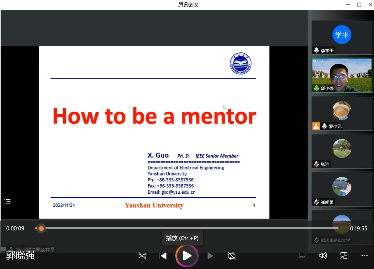 为积极响应公司和公司关于研究生导师培训工作安排,提高研究生的培养质量,2022年11月17日晚7点-9点,电气工程系举行研究生导师经验交流培训,邀请我系郭小强、孙孝峰和贾清泉3位教授进行经验交流分享。
