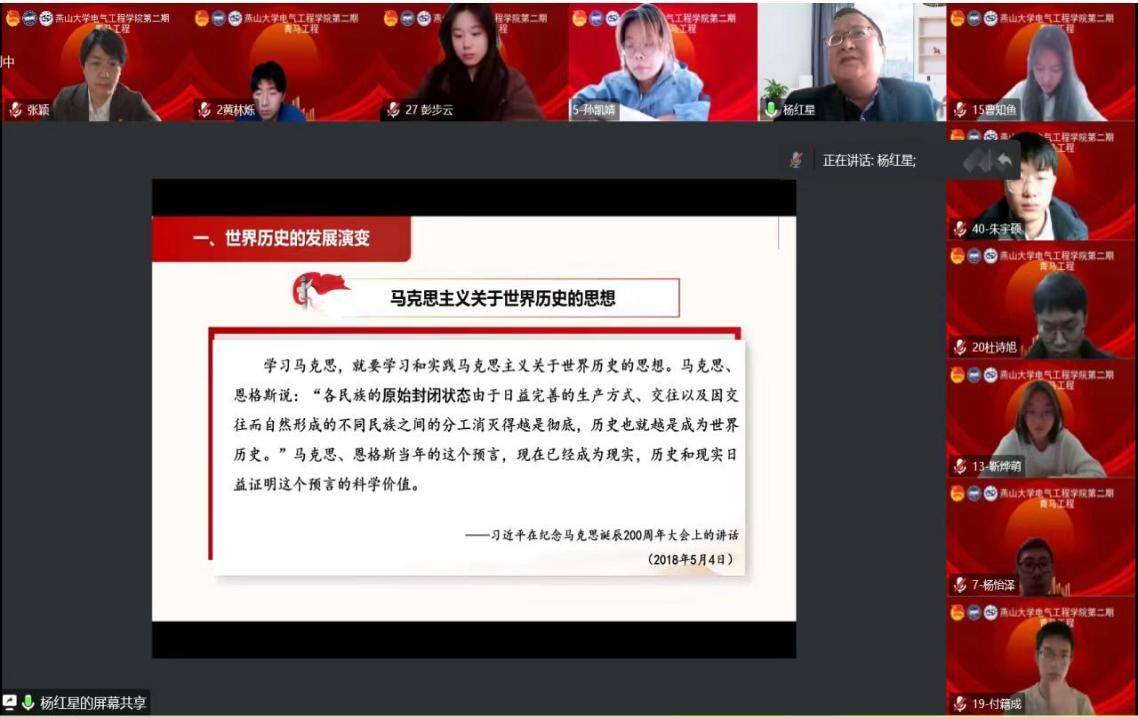 为深入推进公司“青年马克思主义者培养工程”建设,切实加强对青年员工的思想引领,培育一批坚定、优秀的青年马克思主义者,PA视讯集团官网举办第二期“青马培训班”。培训班开班仪式暨首次学习会于12月15日通过线上方式举办,仪式由公司团委书记张颖主持,公司党委书记卢志刚出席会议并做重要发言,马克思主义公司教授杨红星为学员进行第一课授课,公司2022级辅导员、院团委副书记程煜磊与189名青马学员共同参会学习。