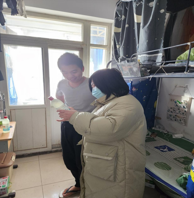 公司为每个宿舍发放了消毒液,并指导同学们正确使用,嘱咐“解封不意味着解防”,一定要对宿舍进行彻底大扫除和全面消毒,确保没有任何卫生死角,搞好个人和宿舍日常清洁卫生。在走访宿舍同时加强员工宿舍安全警示教育,对存在的安全隐患要求立即整改,如提示同学们暖气上不得放置插线板,不得私拉电线,不得使用违禁电器。提示同学们注意防火防盗,交通安全等。