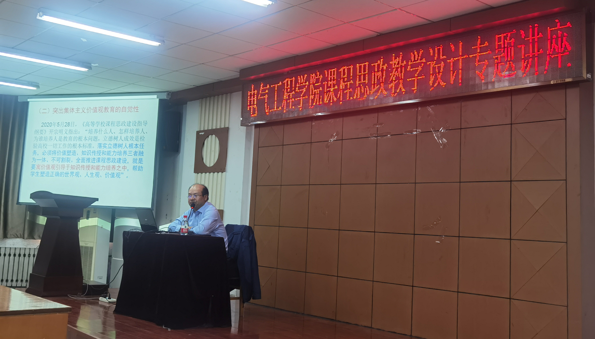 为全面推进公司课程思政建设,充分发挥课程思政与思政课程同向育人作用,根据公司课程思政“双向融合”教研活动安排,5月18日下午,公司邀请马克思主义公司刘舸教授来做课程思政教学设计专题讲座——“挖掘课程思政元素的基本原则与方法”,公司全体教师及实验员听取了讲座。讲座由副经理刘爽主持。
