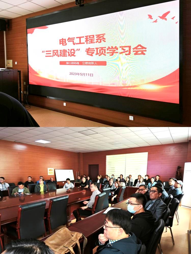 为进一步落实立德树人根本任务,认真落实“三风”建设工作实施细则,严肃教风学风考风,加强师德师风建设。2023年5月11日下午,电气工程系在电气馆D207召开“三风建设”专项学习会,本次会议由电气工程系副主任张迪老师主持,电气工程系全体教师参加了本次会议。