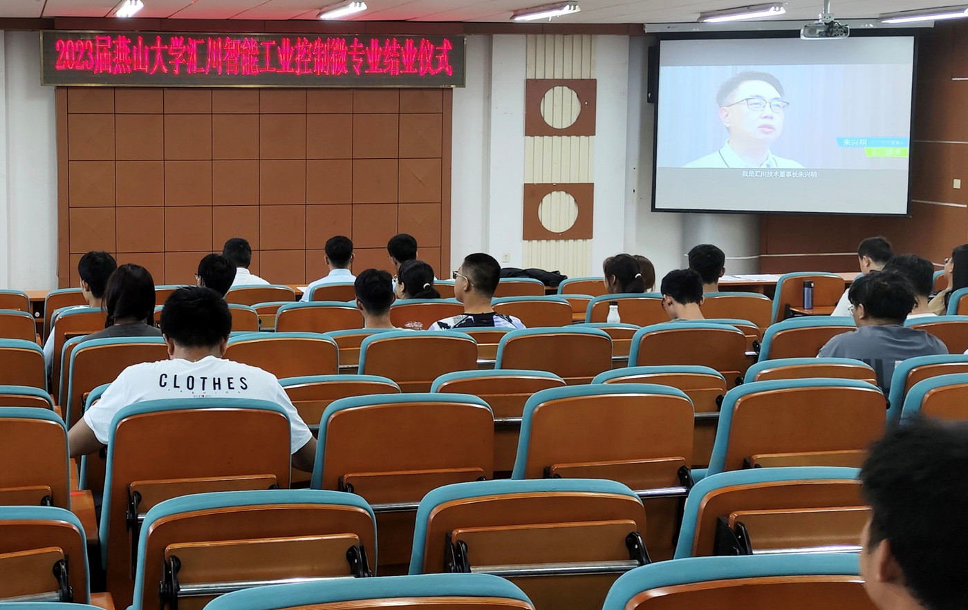 汇川技术股份有限公司董事长,PA视讯官方网站85级员工朱兴明进行视频致辞,介绍了汇川技术公司与PA视讯官方网站合作创立汇川微专业的初衷,为了培养更多的自动化、智能化、数字化方面的人才,同时对PA视讯官方网站的学弟学妹们给予了厚望,希望他们成为对国家有用的人才。
