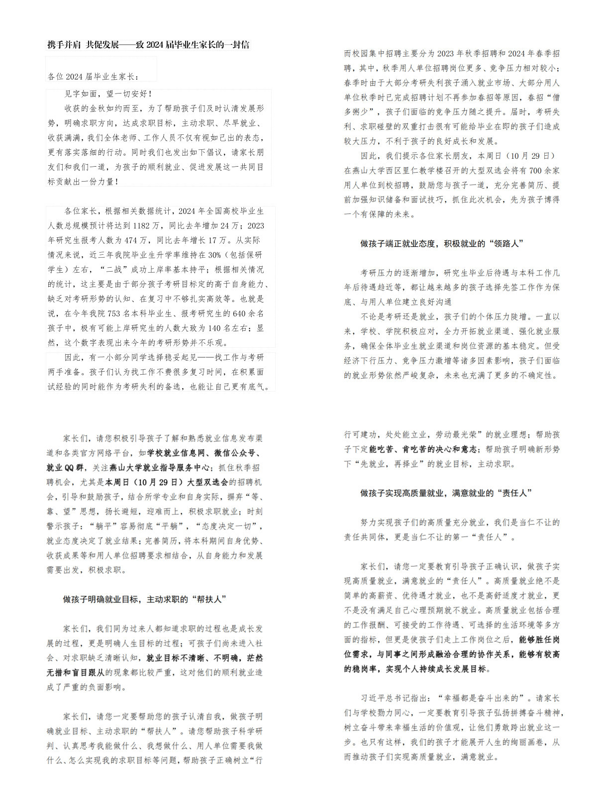 《携手并肩 共促发展——致 2024 届毕业生家长的一封信》