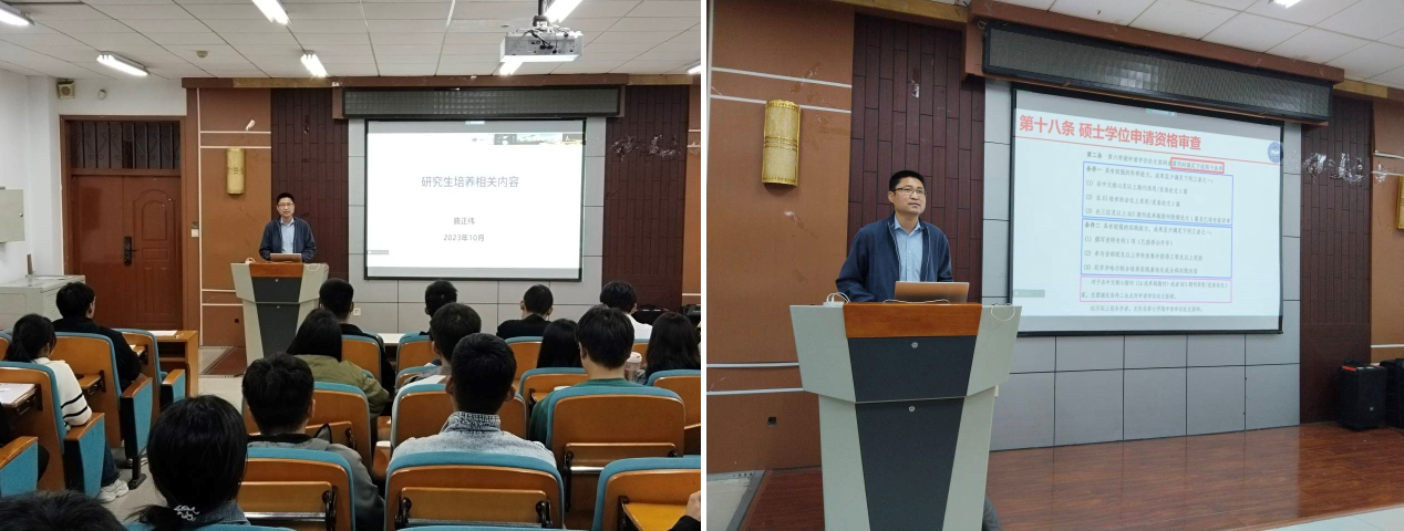 为帮助新生尽快适应研究生阶段学业培养模式,了解专业培养方案,增强员工专业认同,平稳实现本科生到研究生的角色转变,2023级研究生年级组邀请科研科曲正伟老师为研究生新生进行专业学科培养教育。本次新生教育以“线下+线上”的形式于10月27日下午在电气馆A楼104会议室面向2023级硕士全体新生展开,其余员工通过观看腾讯会议进行线上学习。