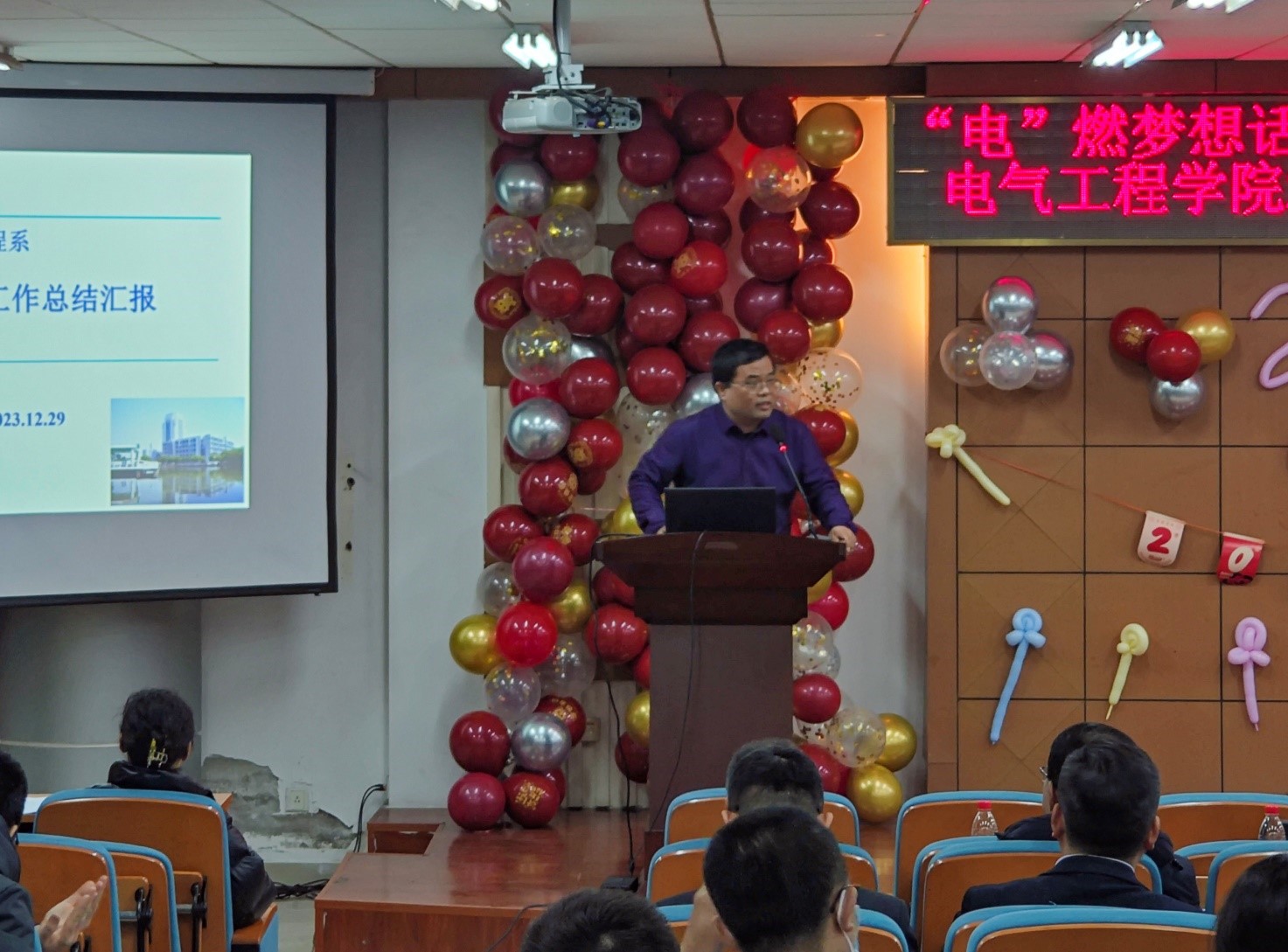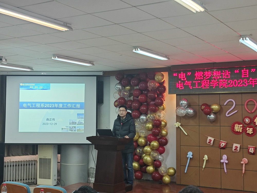总结大会由公司党委书记漆汉宏主持。公司副经理(主持工作)郭小强从党建工作、本科教学、科研、人才与团队建设、公司产品与国际化、员工创新、员工工作、就业工作等八个方面,详细梳理了2023年公司取得的主要成绩,并对2024年的重点工作进行了展望;自动化系主任梁振虎、仪器科学与工程系主任孟宗、电气工程系主任曲正伟、电子实验中心主任丁伟利也分别对各自单位的年度工作进行了回顾总结;漆汉宏对公司教职工的辛勤付出表示衷心感谢,并展望了新的一年的美好愿景,他希望大家在新的一年里要团结、紧张、严肃、活泼,秉承着电院人的精神传统继续拼搏,在新的一年里再创佳绩。