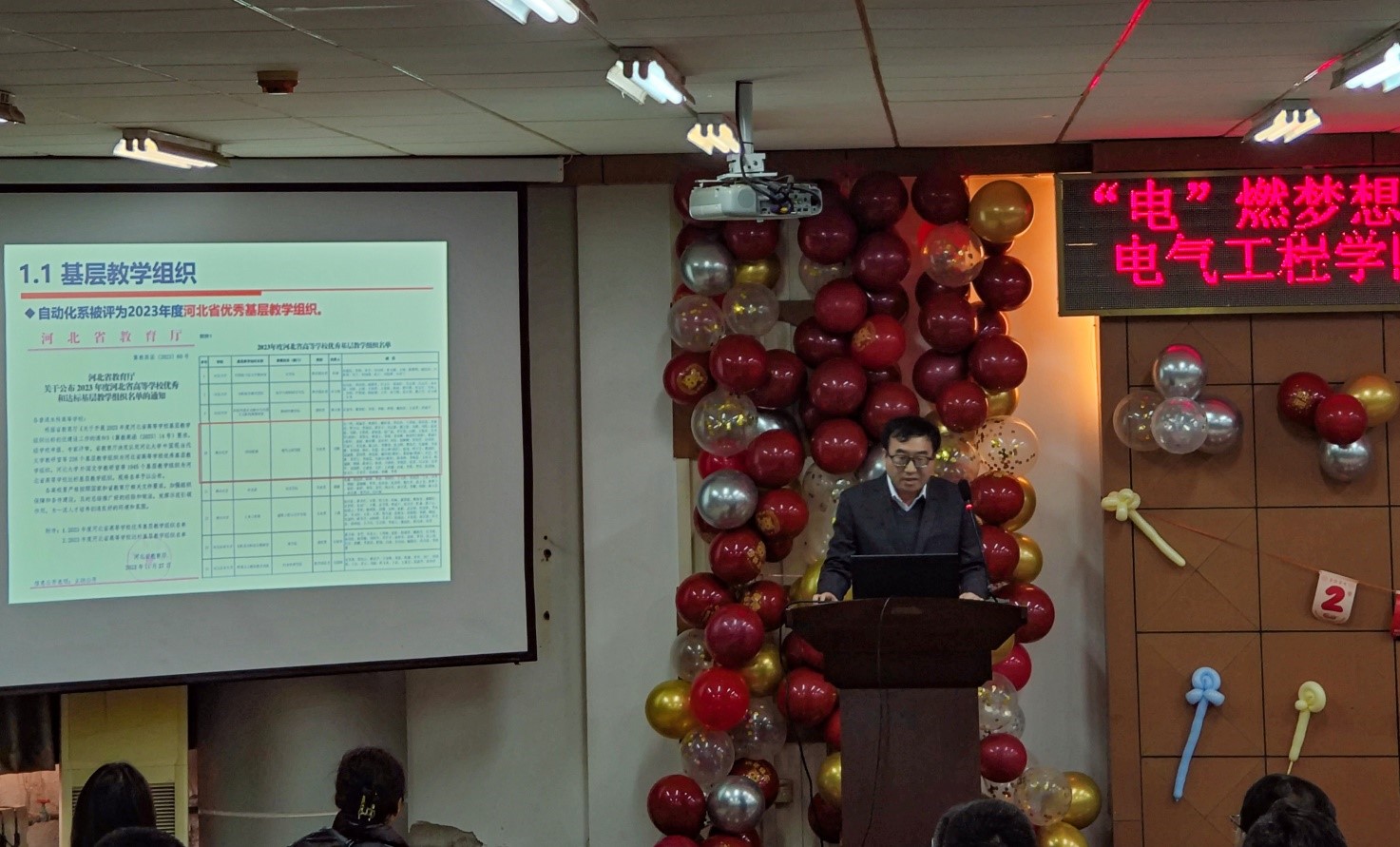 公司党委常委、副董事长王利民也于联欢会中途莅临现场与大家共享节日的喜悦,期间代表公司党委发表致辞祝贺电气公司一年来在各方面取得的成绩,感谢大家的辛苦付出,希望大家新的一年再接再厉,祝福大家新年快乐,万事如意。