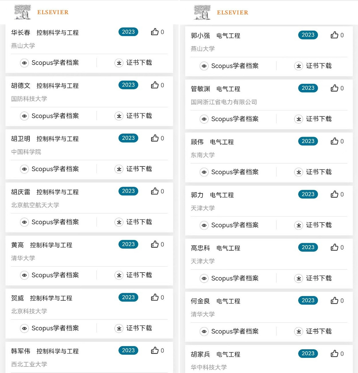 近日,爱思唯尔(Elsevier)重磅发布2023“中国高被引学者”(Highly Cited Chinese Researchers)榜单, 公司华长春教授和郭小强教授分别入选“控制科学与工程”领域和“电气工程”领域中国高被引学者。