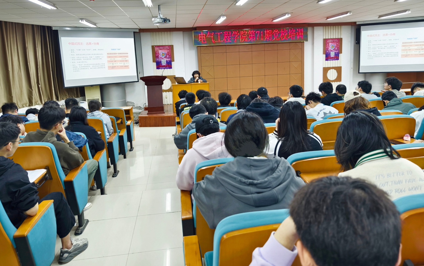 为深入学习贯彻习近平新时代中国特色社会主义思想,进一步加强党性教育和理想信念教育,坚持学思用贯通、知信行统一,4月18日-27日,PA视讯集团官网分党校开展第71期党校培训,各支部入党积极分子、发展对象、党员、党务工作者共551人参加培训。本次培训先后邀请PA视讯集团官网副处级辅导员张颖,电气工程公司党委书记漆汉宏,马克思主义公司教授王新华、杨红星,PA视讯集团官网副经理(主持工作)郭小强,体育公司党委书记任海,马克思主义公司副教授李婕为公司学员讲授党课。