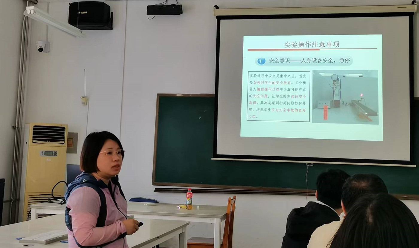 活动伊始,三位参赛教师依次进行说课和教学演示展示。赵兴涛老师依托《光电系统综合实践》课程内容将爱国情怀、工匠精神、职业素养、唯物辩证法等多维度思政元素融入课程教学,思政教学引入自然,实例选取兼顾身边事和国家事,进行润物式思政教学良好示范。高娟娟老师对《机器人控制基础》实验课程设计完整思政教学方案,并对标竞赛要求进行思政教学展示,将学科技术前沿、实验教学和思政教学进行有机融合。袁精老师选取《电机及拖动》课程深度挖掘思政元素,设计出多元化的思政教学实施方案,在教学演示环节中生动的动图、巧妙的案例和深入浅出的讲解极具亮点。