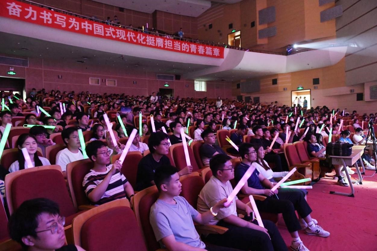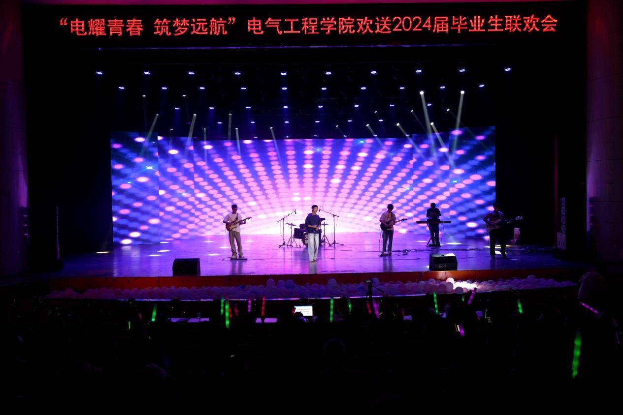 联欢会以“电耀青春 筑梦远航”为主题,讲述2024届毕业生飞扬闪耀的校园回忆和与国同行的热血青春。毕业生们尽情挥舞手中的荧光棒,呐喊声响彻整个场馆。
