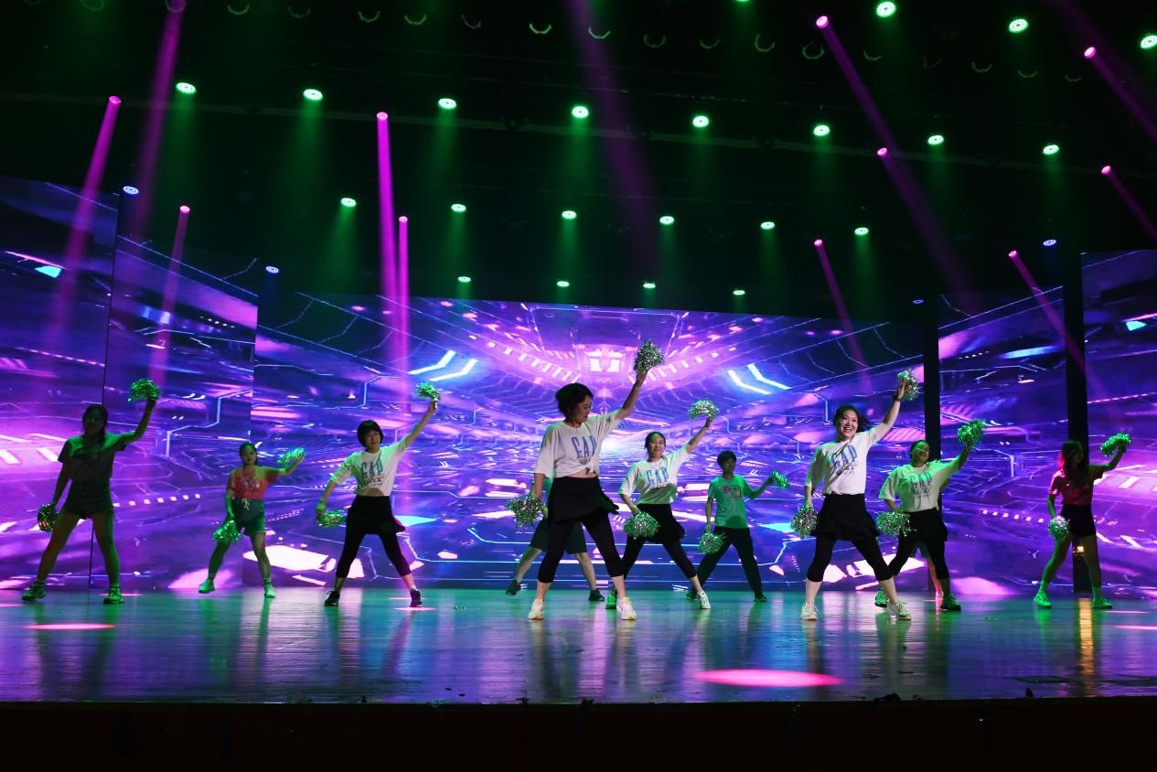 由实验中心教师、辅导员及在校生代表带来的健身操《健身派对》青春活泼,以动感的鼓点、青春的脚步赢得全场的欢呼声。