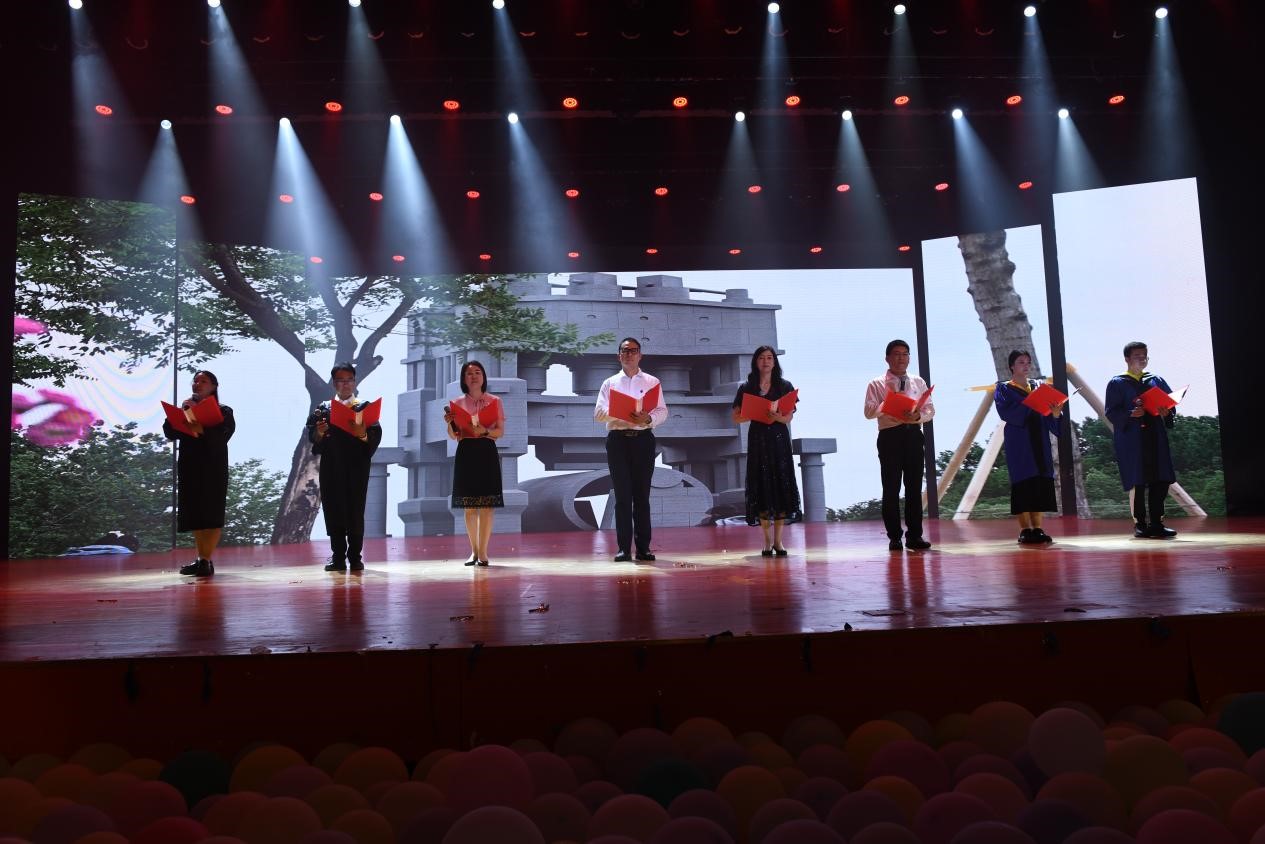 公司教师代表电气系沈虹、测控系程淑红、自动化系呼子宇、辅导员石燕凯和毕业生代表常思雨、魏泽林、郭欣园、刘猛带来的情境音画《燕园芳华 山海扬帆》,回顾相聚时光、寄予真挚祝福,在真情流露中带来无限感动。