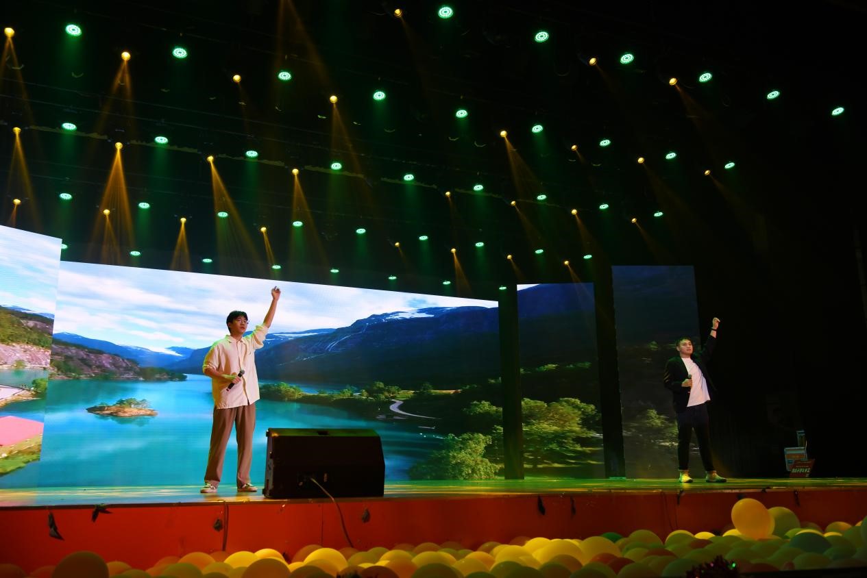 李宗伦和张晟宇带来的相声《五点钟开始》贴近毕业生在燕园的学习生活,现场引来笑声和掌声一片。