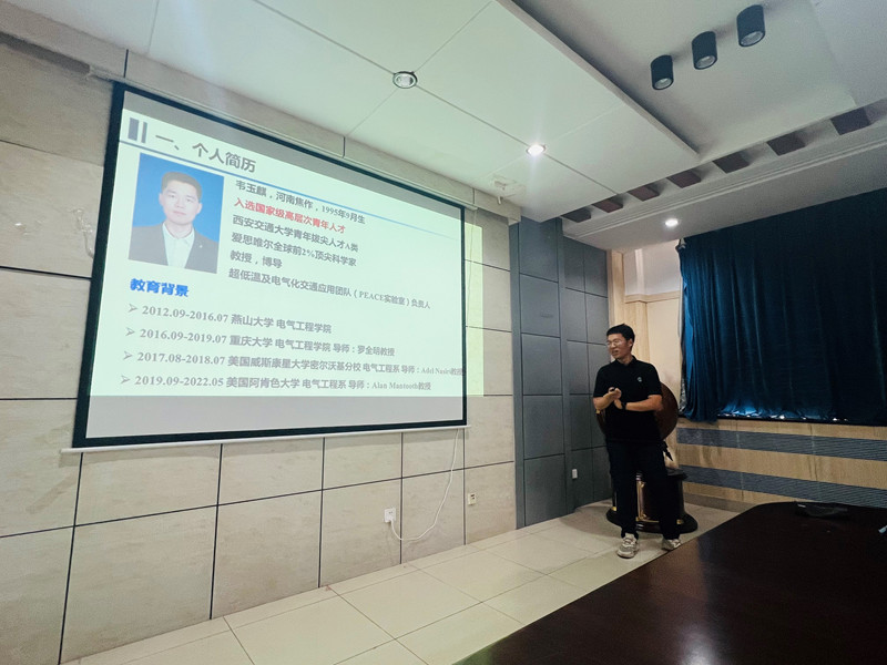 韦玉麒教授在学术报告厅A408,与电气工程专业教师、研究生分享了8年的求学奋斗经历和工作中的成绩与经验,进行了精彩的报告演讲。他首先感谢老师们的信任,更感恩母校的教育培养。PA视讯官方网站电气工程专业本科培养课程体系和实践教学内容为个人后期的研究奠定了扎实的基础,能够更加顺利的开展科研工作。同时介绍了自己研究生、博士期间的研究内容和研究思路、目前的科研方向。交流探讨了谐振变换器当前的问题和解决方案,并与参加交流的师弟师妹们介绍了自己本科期间学习英语和专业课程、后续科研规划的一些经验。