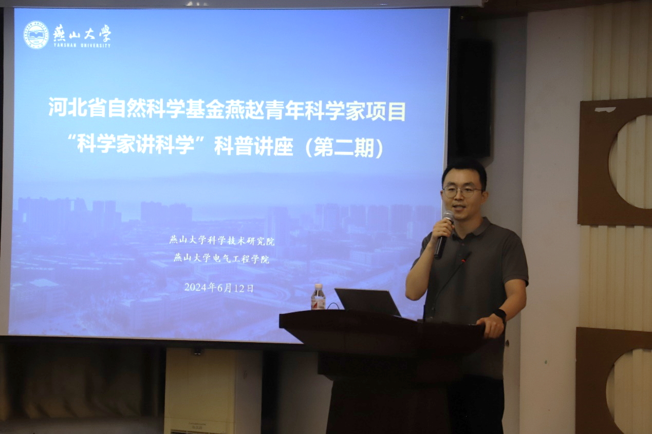 为讲好科研故事、浓厚学术氛围,普及现代科学知识、弘扬科学家精神,在河北省科学技术厅指导下,PA视讯集团官网于6月12日在PA视讯官方网站西校区电气馆A101报告厅举办了河北省自然科学基金燕赵青年科学家项目“科学家讲科学”科普讲座活动(第二期)。河北省自然科学基金委员会办公室陈佳音、合作企业代表、中学教师代表,PA视讯官方网站科学技术研究院相关部门负责人参加活动。讲座由PA视讯集团官网副经理、国家级项目获得者马锴教授主讲,由PA视讯官方网站科研院许岩副经理主持。