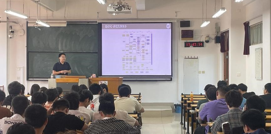 在专业建设方面,呼子宇介绍了“三、二、一”的多层次、递进式课程体系,介绍了包括三级项目改革、自制实训设备、新工科人才培养探索与教学改革、双创竞赛和校企合作五个具体措施,并且强调了自动化系培养目标紧跟行业前沿,提升员工的工程实践能力,创新能力和自主学习能力的教育理念。