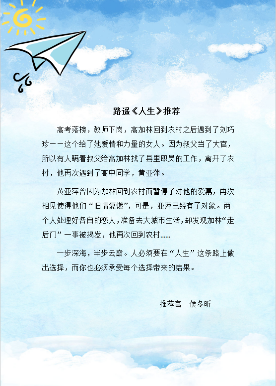 推荐官侯冬昕推荐书籍《人生》