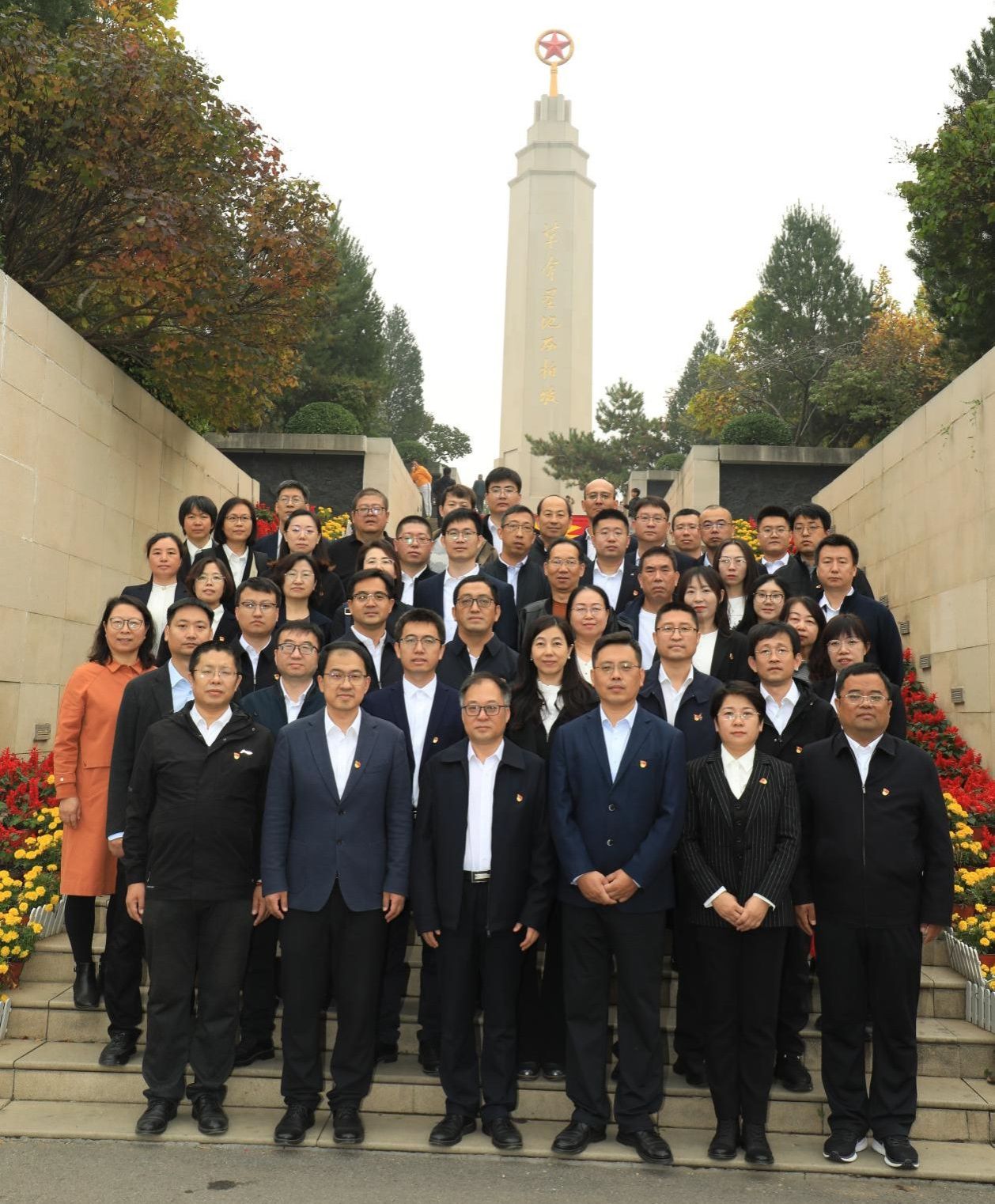 西柏坡纪念碑前合影
