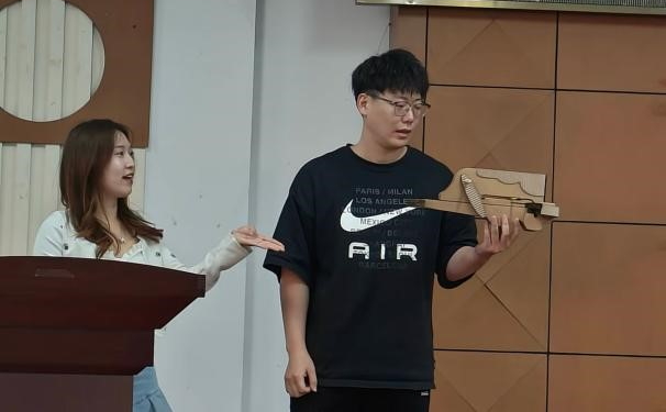 本次比赛由作品介绍、环保小游戏和附加答题三个环节组成,都包含了垃圾分类和废弃物循环利用的理念。在比赛中,参赛同学用他们的巧思和巧手,将日常生活中宿舍里被视为“垃圾”的物品,摇身一变,制作成了既实用又美观的艺术品、生活用品。游戏和答题环节中,同学们发挥垃圾分类的知识储备,现场氛围紧张刺激却又趣味横生。